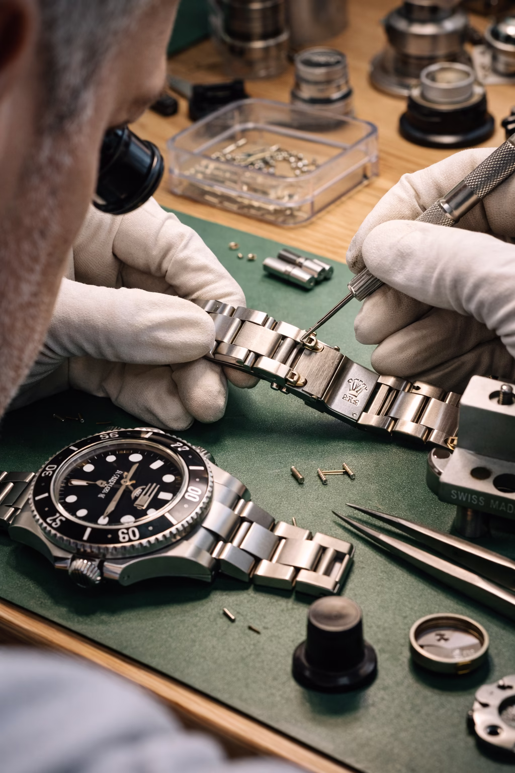Rolex bands might look basic, however they’re very exact. Trying to fix them yourself– tightening screws, changing links– can easily scrape the metal or strip the threads. A skilled watch professional understands how to handle each part properly, utilizes the right devices, and makes certain whatever fits the method Rolex meant. We at Luxury Watch Service use brand-specific tools to ensure the bracelet is restored without compromising any component.